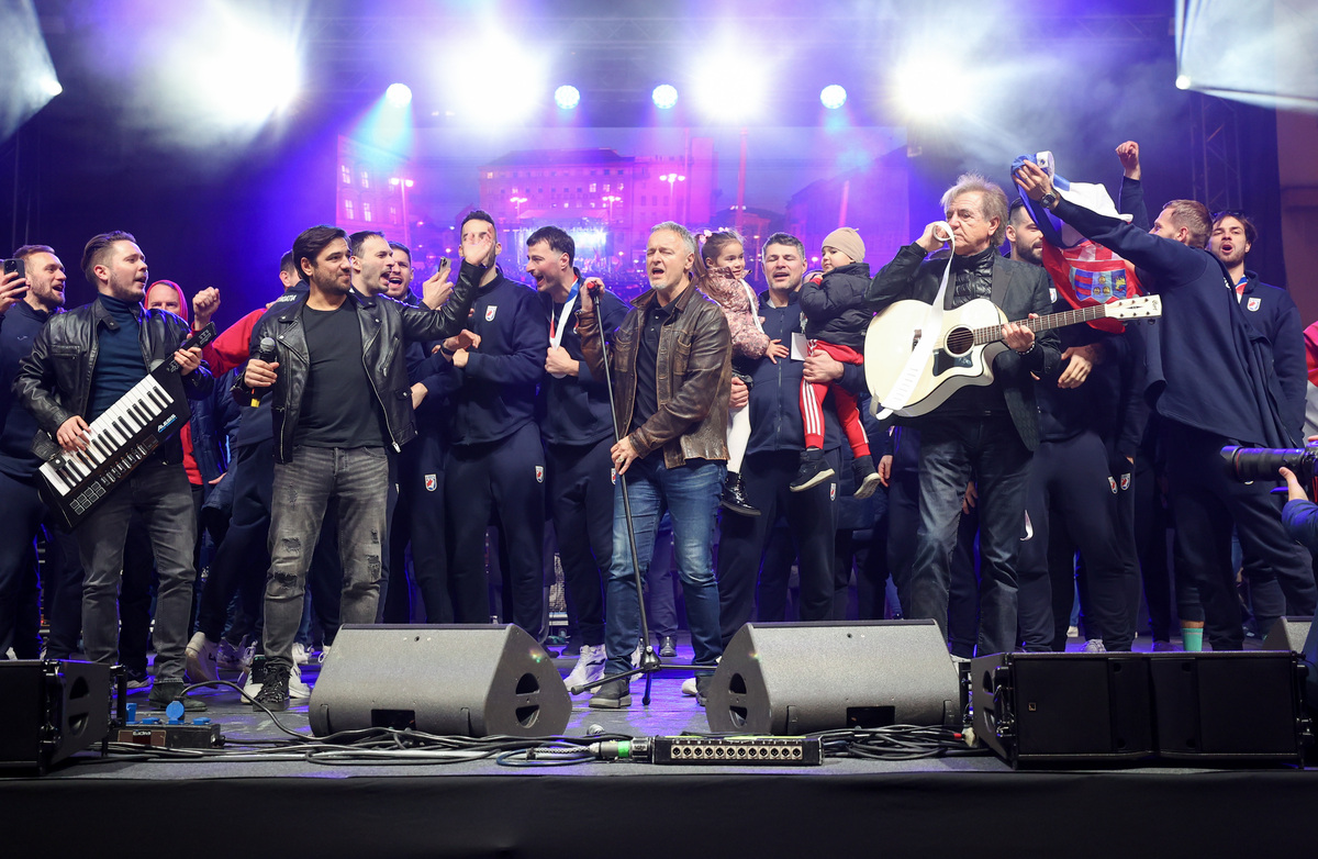 Već u ranim popodnevnim satima, Trg je bio prepun ljudi, a dok su svi čekali dolazak svojih rukometnih junaka, atmosferu su održavali popularni Daleka obala, Zaprešić Boys i Prljavo kazalište. Po dolasku rukometaša, na pozornici im se pridružio i Thompson, čime je proslava bila još potpunija.