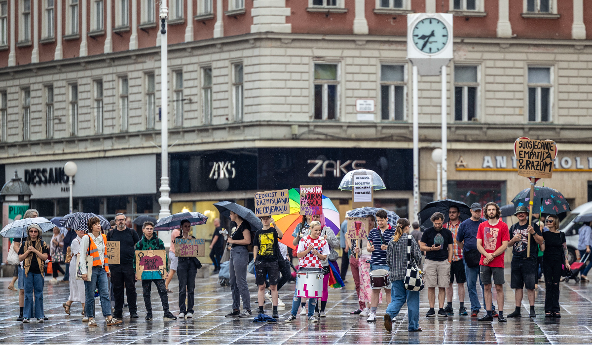 Ovu molitvu, naravno, nisu propustili ni prosvjednici koji su, potaknuti onom drugom stranom, stajali na kiši s već dobro poznatim transparentima. Treba istaknuti kako je molitva prošla bez incidenata i reakcija policije.