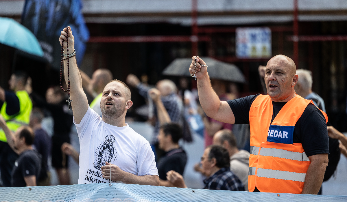 Molitelji krunice i ove prve subote u mjesecu okupili su se na glavnom zagrebačkom trgu. Unatoč kiši koja pada u glavnom hrvatskom gradu, revnost je prevladala. Okruženi policajcima i banerima Majke Marije, s krunicama u rukama nastavili su moliti za već objavljene nakane.