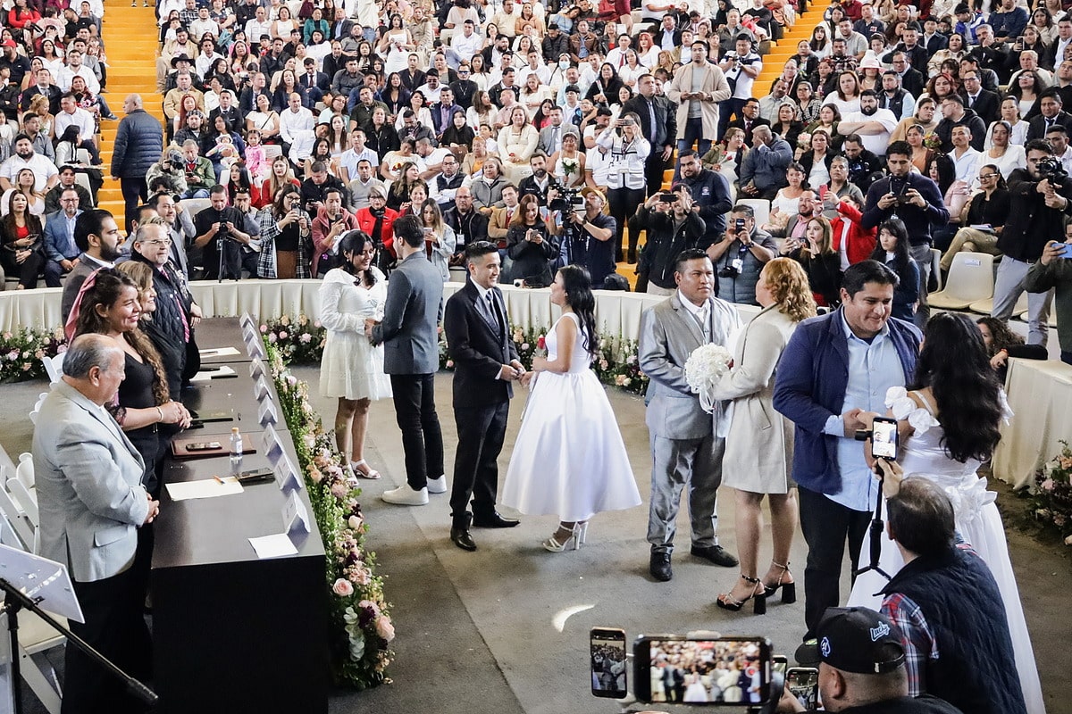 Oko 1200 parova je sklopilo brak na masovnom vjenčanju u srijedu u Nezahualcoyotlu, predgrađu Mexica, gdje su masovna vjenčanja tradicija za Valentinovo.
